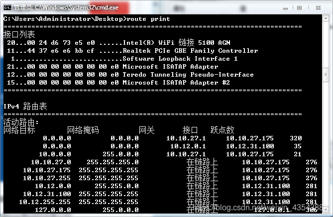 可以看到:无线网卡的跃点数为20,小于有线网卡的跃点数600