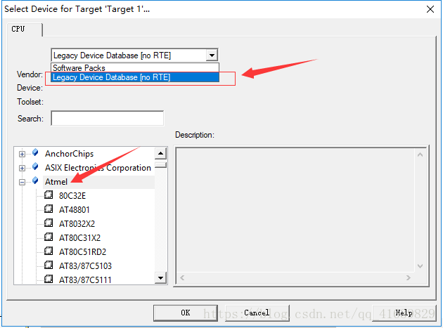6.按照下图选择 ,选择Ateml下的AT89C52便可创建51单片机的工程